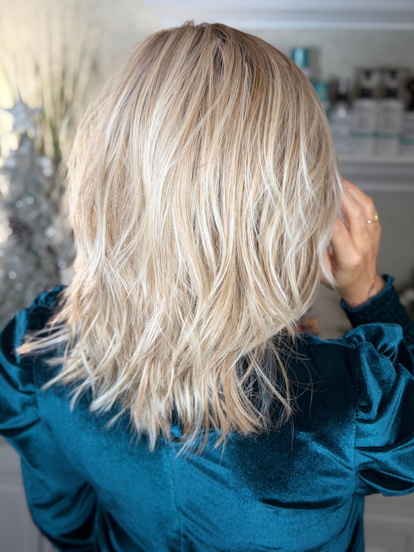 Lucky Break delivers a perfect mix of modern sophistication and effortless style. With shoulder-grazing layers and a lightweight, natural movement, this look is as versatile as it is chic. The extended lace front and wide, hand-tied monofilament part create a seamless, realistic hairline, while the premium heat-friendly fibers give you the freedom to style it straight, waved, or curled to suit any occasion. Comfortable, elegant, and endlessly wearable, Lucky Break is a true everyday luxury.