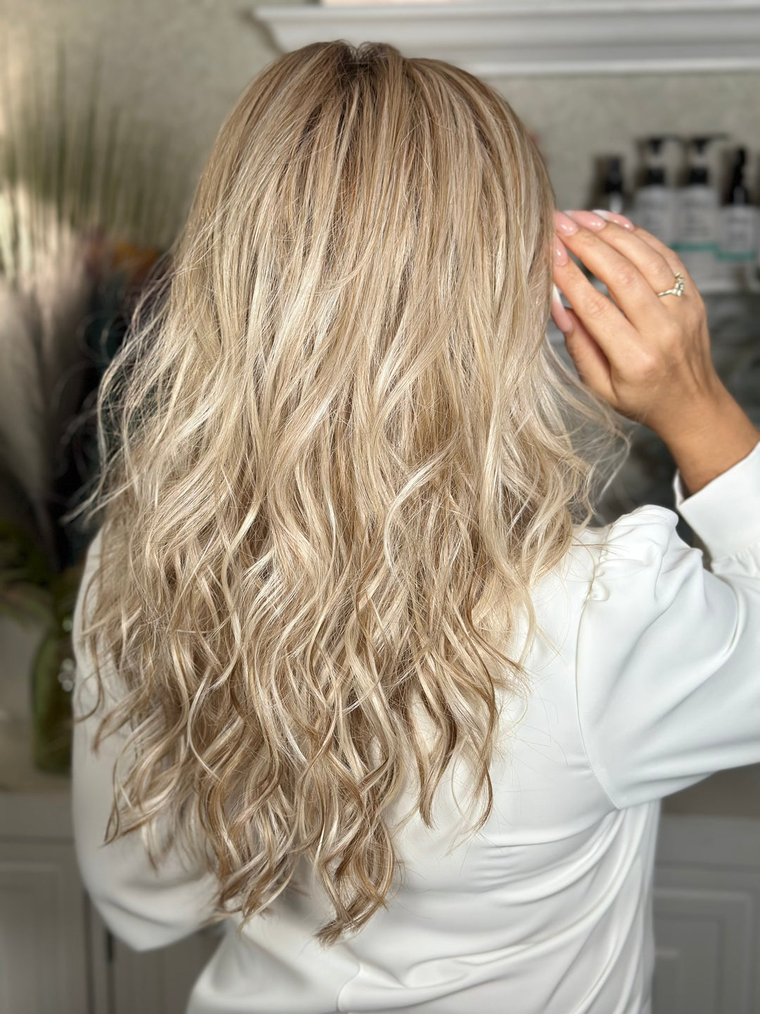Almost Famous is pure star power in wig form. Long, flowing curls create a breathtaking silhouette with movement that feels glamorous from every angle. The soft, face-framing shape and naturally placed part add a touch of refined drama, giving this style that unmistakable “I just stepped into the spotlight” energy. Voluminous, feminine, and impossible to ignore — she’s made for the woman who loves a little extra attention.