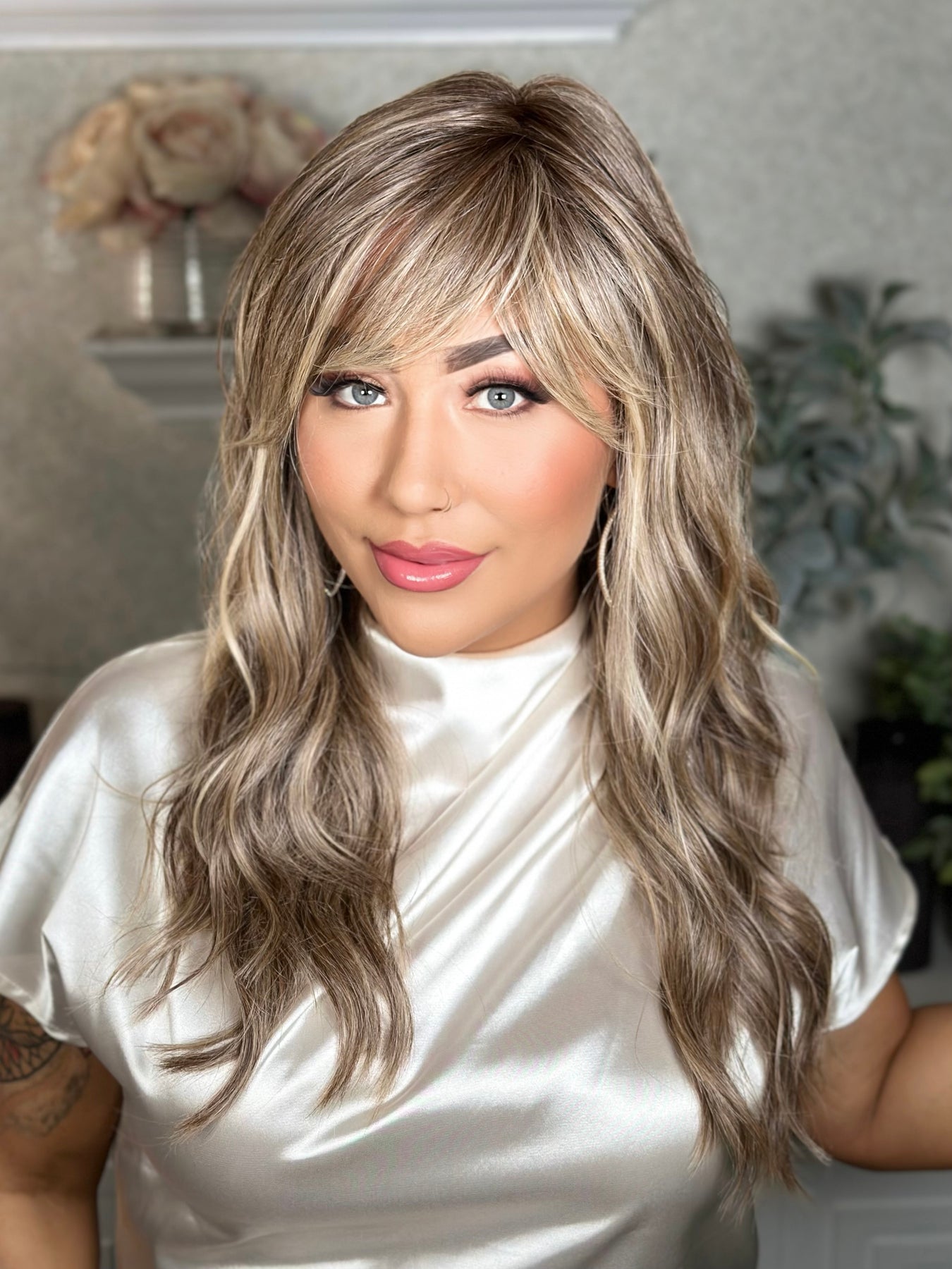 Beauty Shaker brings effortless movement and modern glamour to life. Long, airy layers flow with soft texture and a breezy wispy fringe, creating a look that feels naturally undone yet polished. The extended lace front offers a seamless, realistic hairline, allowing for off-the-face styling with confidence and grace.