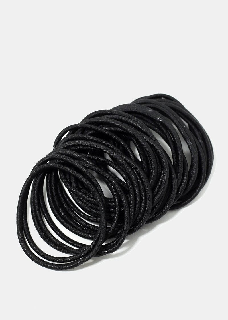 Pack of 36 black metal-free thin hair ties ideal for fine hair, pigtails or tying up hair to put in a wig cap for wearing wigs.