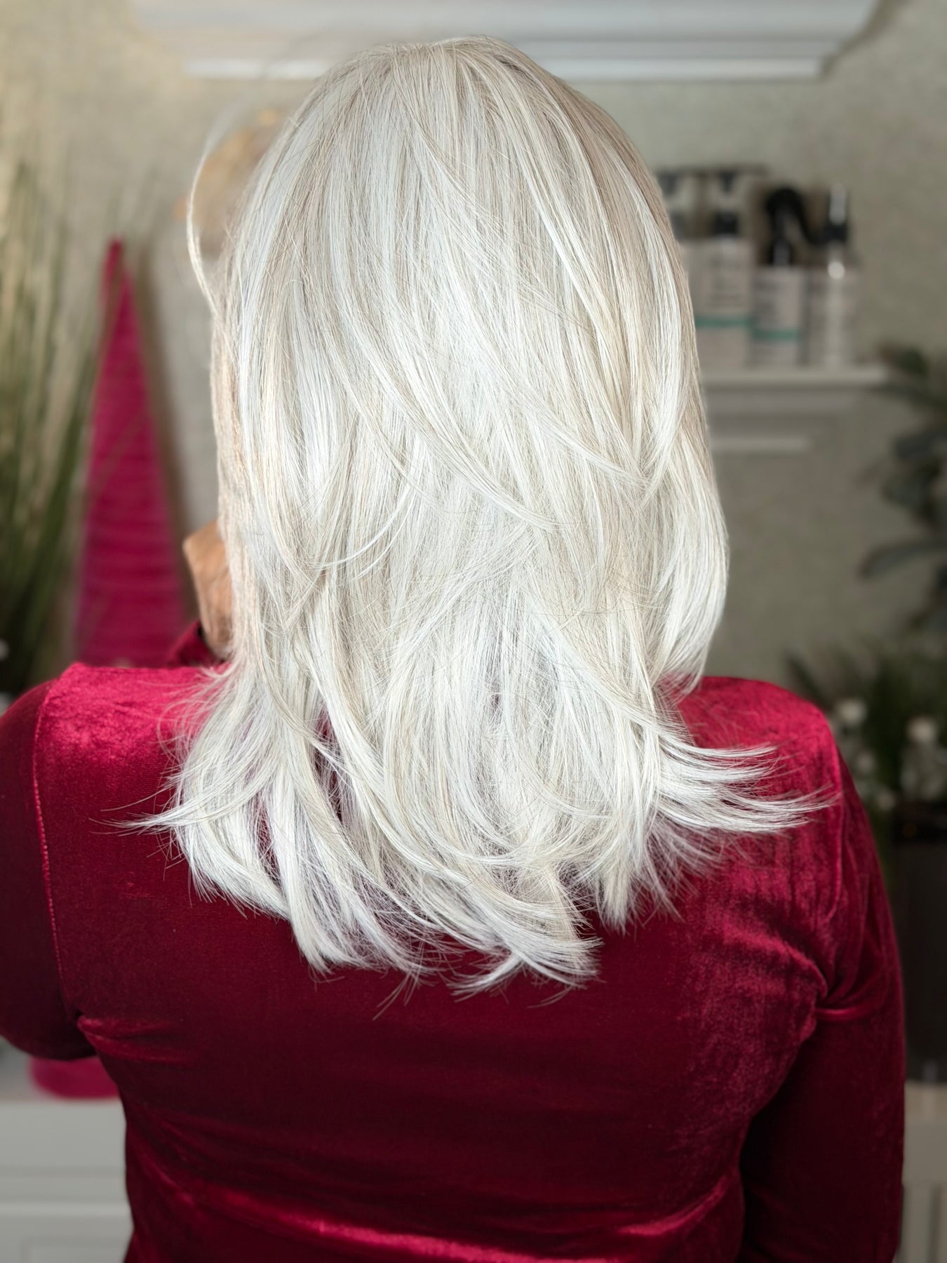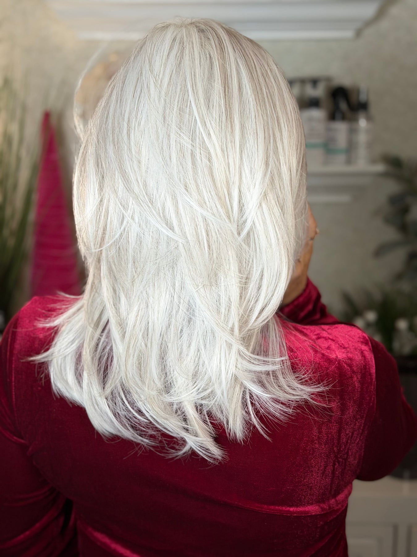 Candid Convo brings together soft movement and effortless elegance in a style that feels naturally confident. Feathered cut layers flow with ease, creating a graceful silhouette that’s polished without trying too hard. Subtle texture adds just the right amount of dimension, giving you that perfectly relaxed, beautifully put-together look from morning to night.