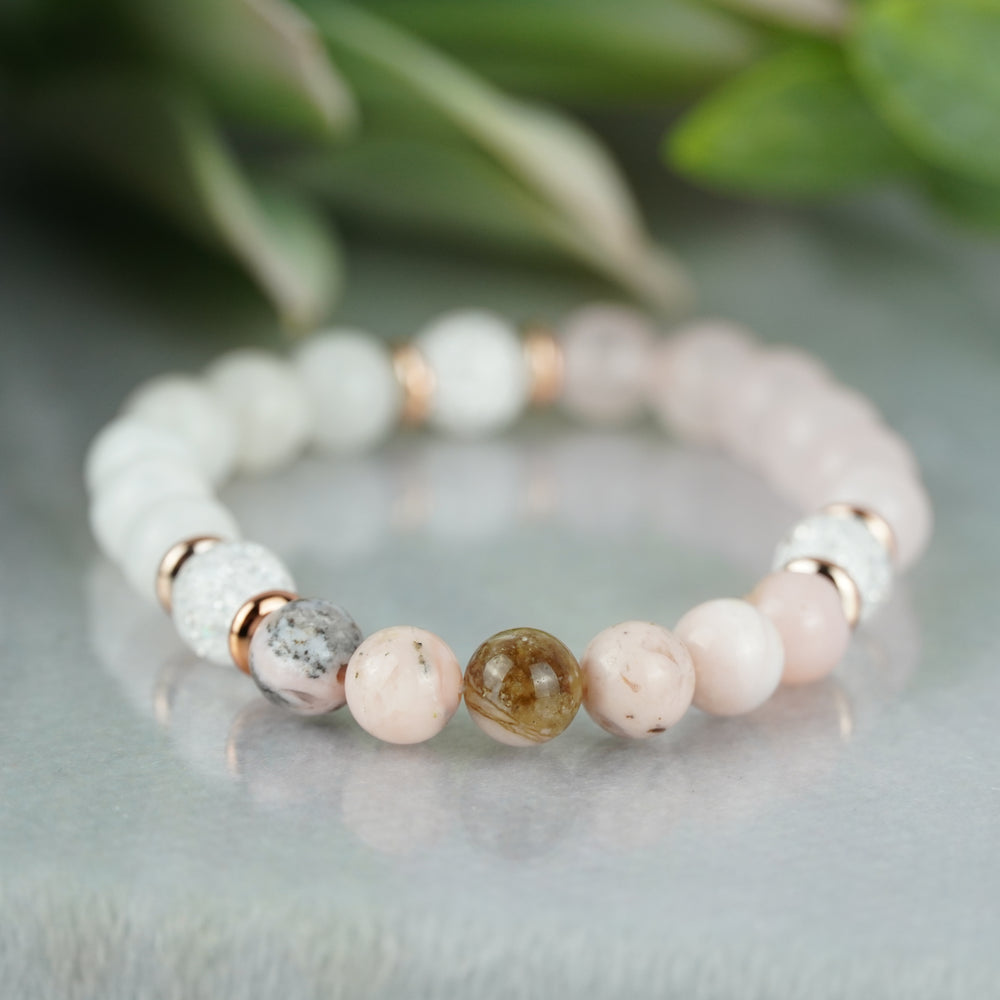 Cracked Quartz, Moonstone, Pink Opal & Rose Quartz Bracelet (Fertility)