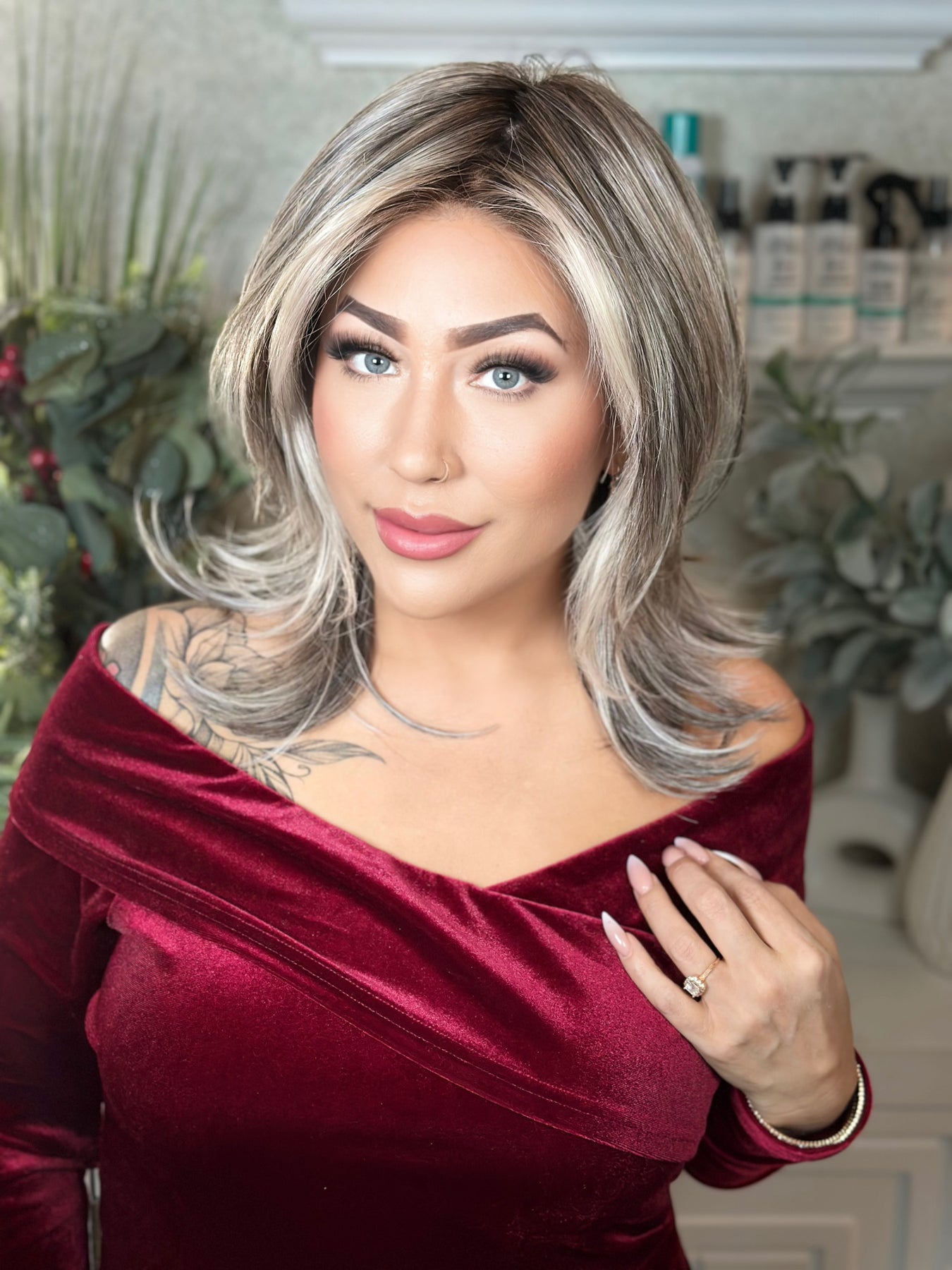 This chic, feathered crown delivers the perfect balance of length and lightness. Soft, airy layers cascade just past the shoulders, creating a breezy, flattering silhouette without the bulk. Designed with a custom-fit lace front and a breathable monofilament top, it offers a seamless, natural hairline and versatile styling—wear it brushed away from the face, swept to the side, or softly framing your features. Lightweight and comfortable, it’s ideal for effortless, all-day wear.