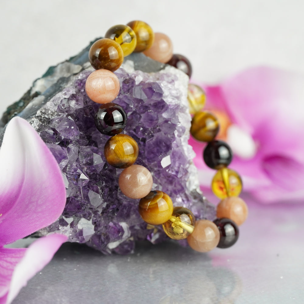 - Features genuine 10mm gemstone beads, strung on non-fray stretch nylon cord for strength and flexibility.