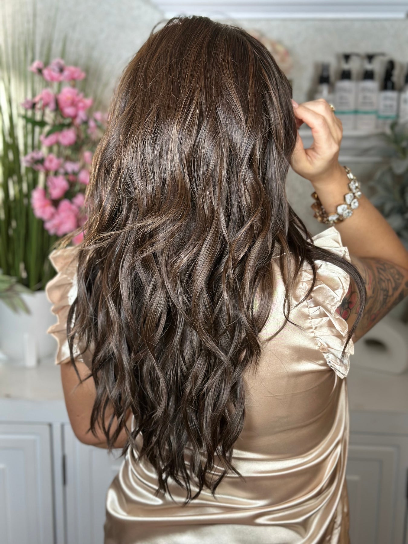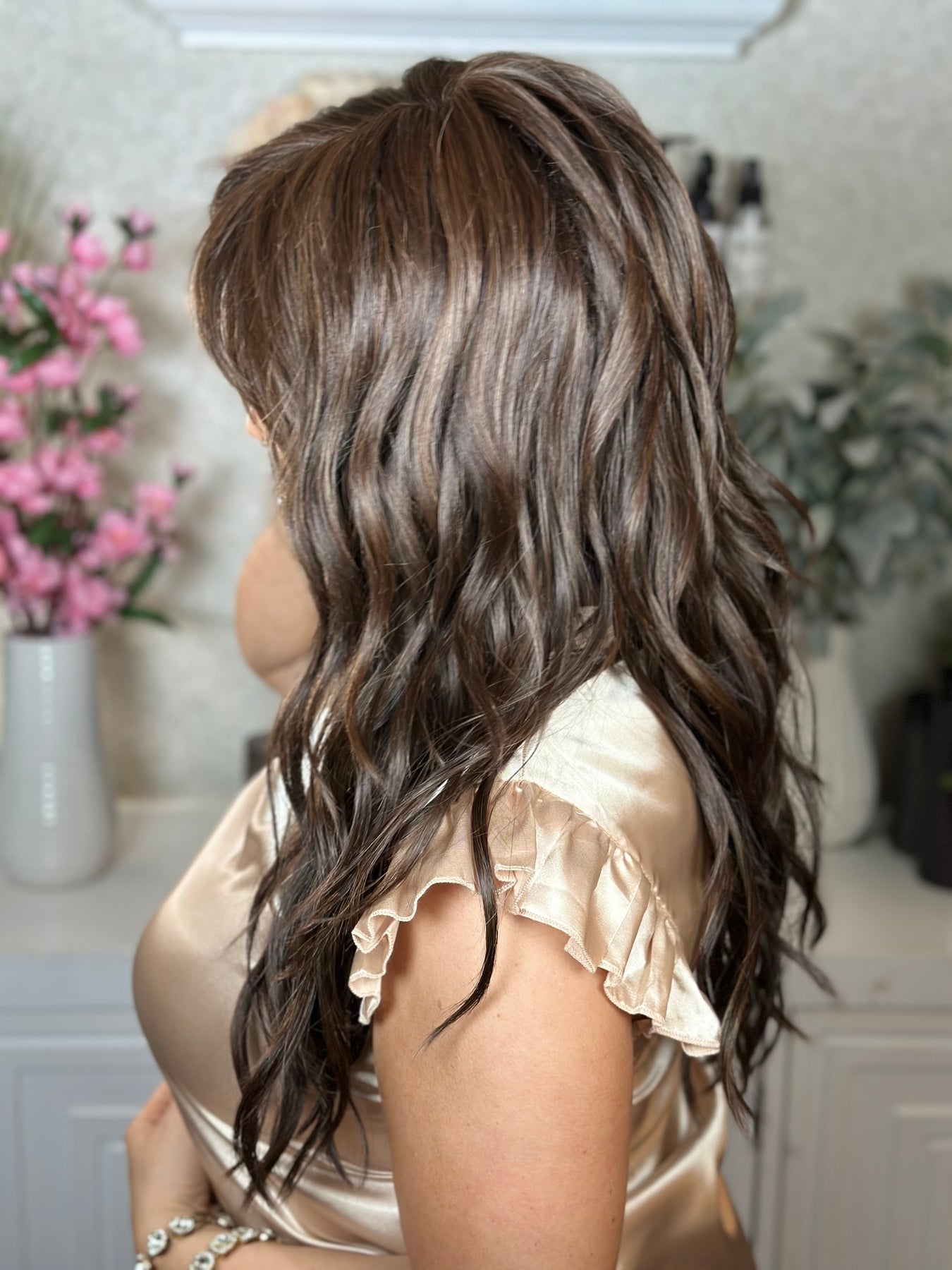 Bring effortless coastal vibes to life with this flowing, beach-inspired style. Long, heat-friendly layers fall in relaxed waves, finished with soft feathered bangs for a breezy, natural look. The lace front creates a seamless hairline, while the monofilament top offers versatile parting and a realistic finish. Lightweight yet full of movement, this style captures the carefree beauty of Sweet Romance in a wearable, everyday piece.