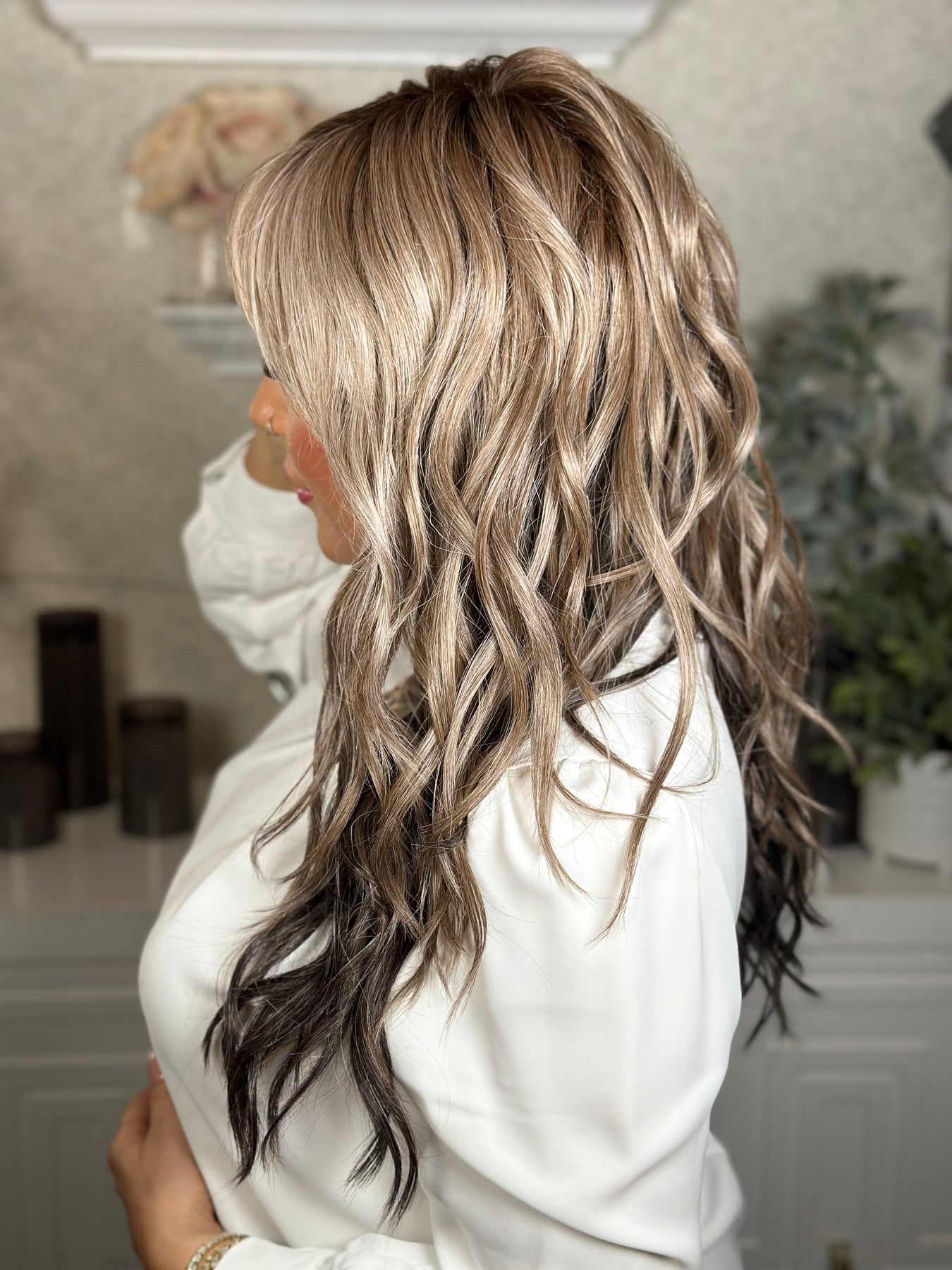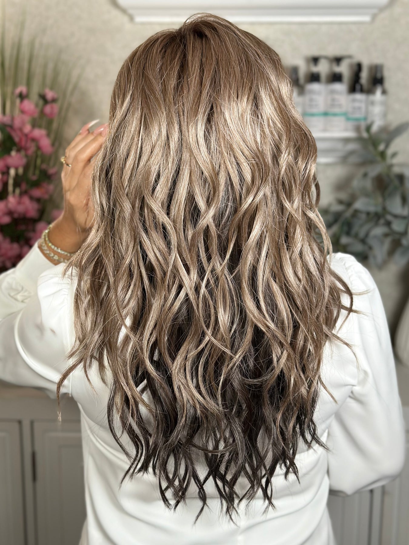 Bring effortless coastal vibes to life with this flowing, beach-inspired style. Long, heat-friendly layers fall in relaxed waves, finished with soft feathered bangs for a breezy, natural look. The lace front creates a seamless hairline, while the monofilament top offers versatile parting and a realistic finish. Lightweight yet full of movement, this style captures the carefree beauty of Sweet Romance in a wearable, everyday piece.