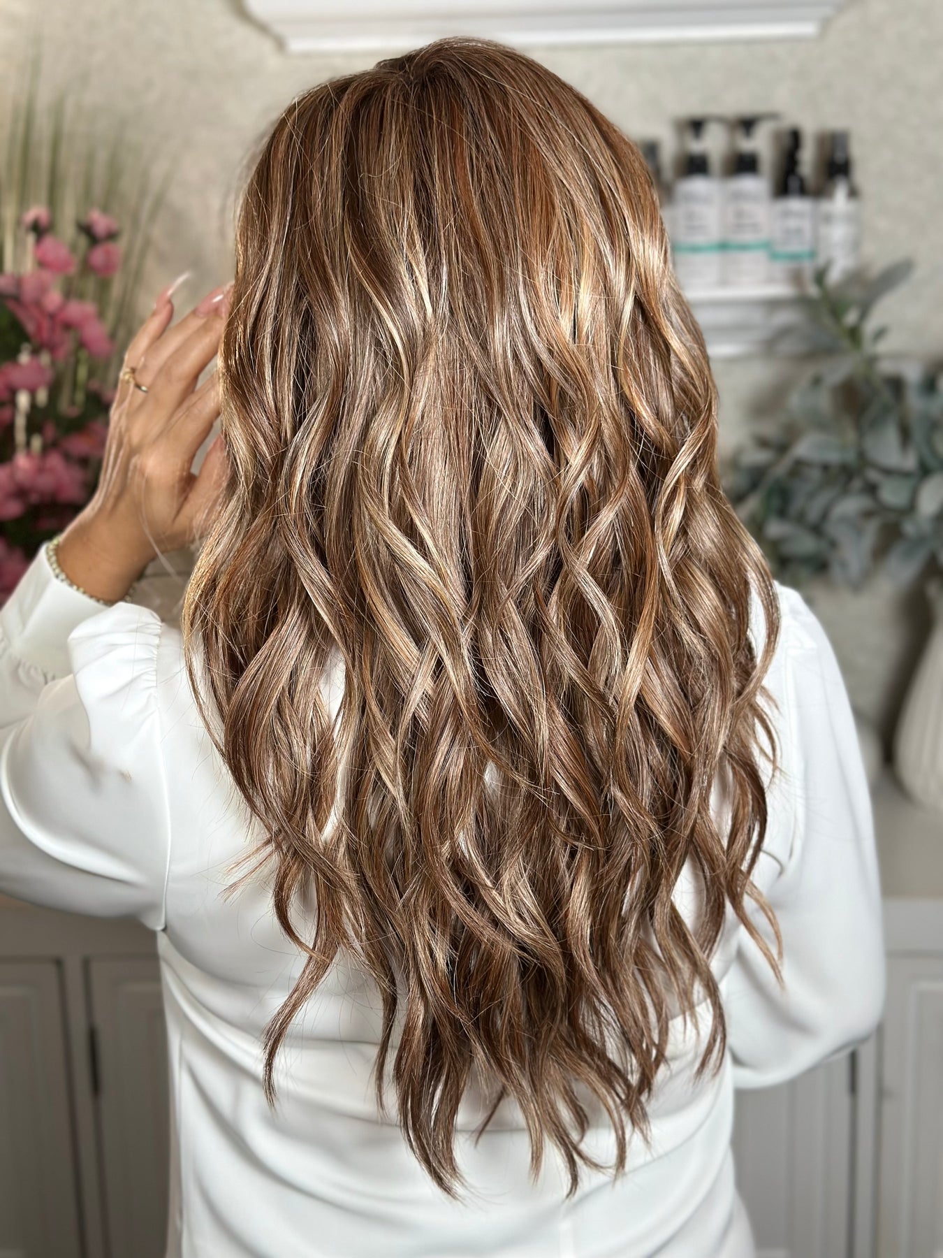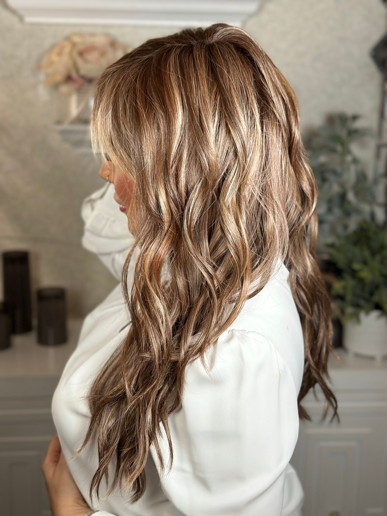 Bring effortless coastal vibes to life with this flowing, beach-inspired style. Long, heat-friendly layers fall in relaxed waves, finished with soft feathered bangs for a breezy, natural look. The lace front creates a seamless hairline, while the monofilament top offers versatile parting and a realistic finish. Lightweight yet full of movement, this style captures the carefree beauty of Sweet Romance in a wearable, everyday piece.