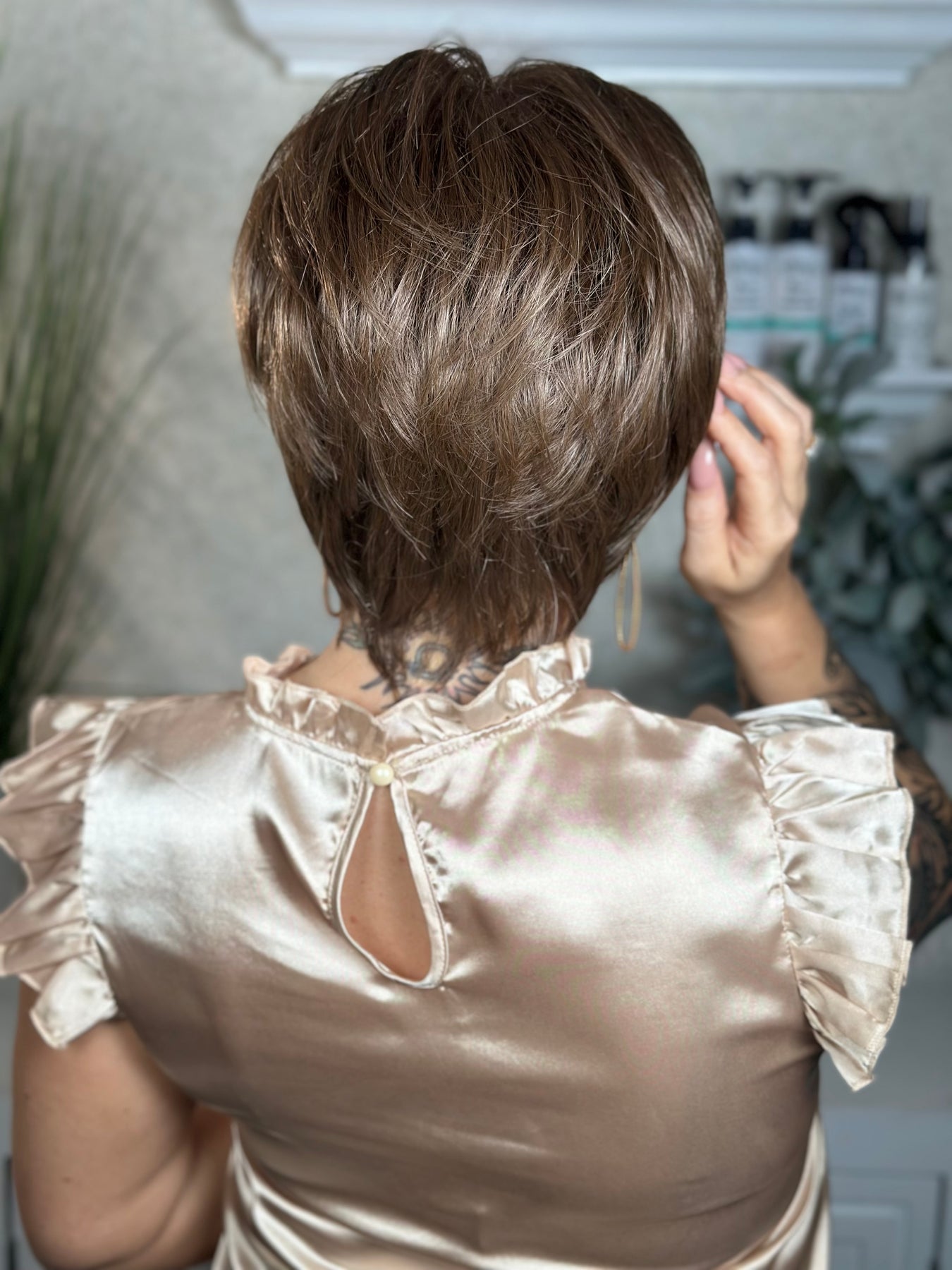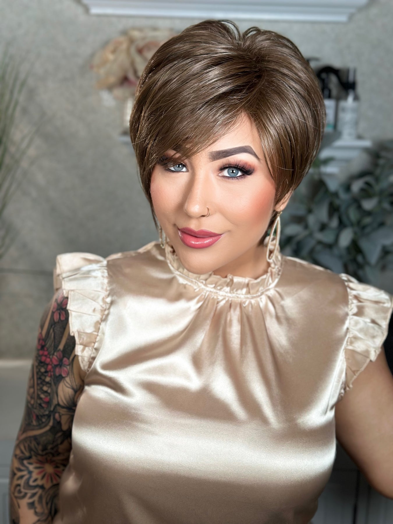 This asymmetrical pixie brings a modern twist to a timeless style. With soft, feathered layers and subtle volume, it frames the face beautifully while offering just enough length to tuck behind the ears or sweep forward for a flirty look. Lightweight and versatile, it’s perfect for everyday wear, special occasions, or even experimenting with a bold new color—making it a flattering choice for anyone ready to switch up their style with confidence.